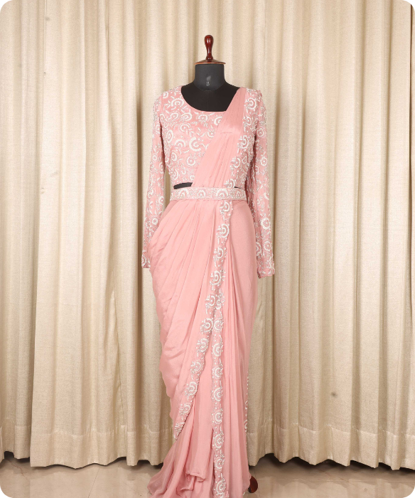 Scarlet Elegance Embroidered Pre-Draped Saree